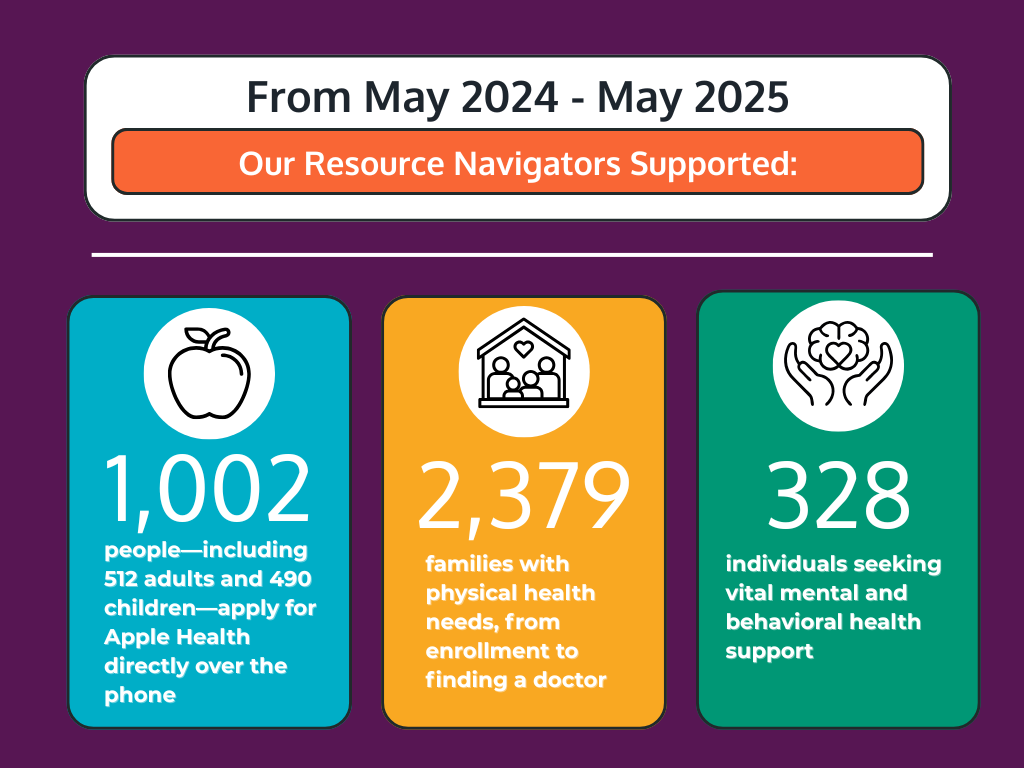 • Apply for Apple Health (Medicaid) directly over the phone, providing real-time, multilingual assistance.